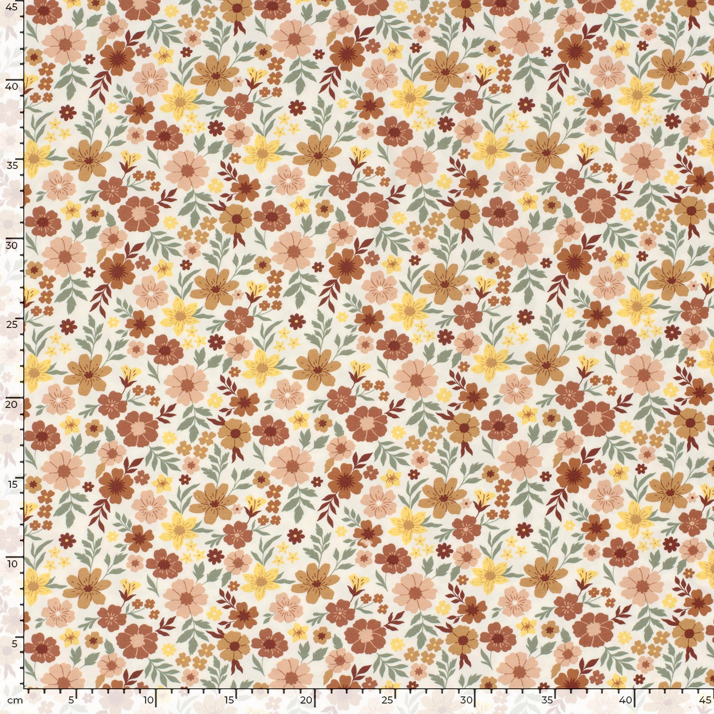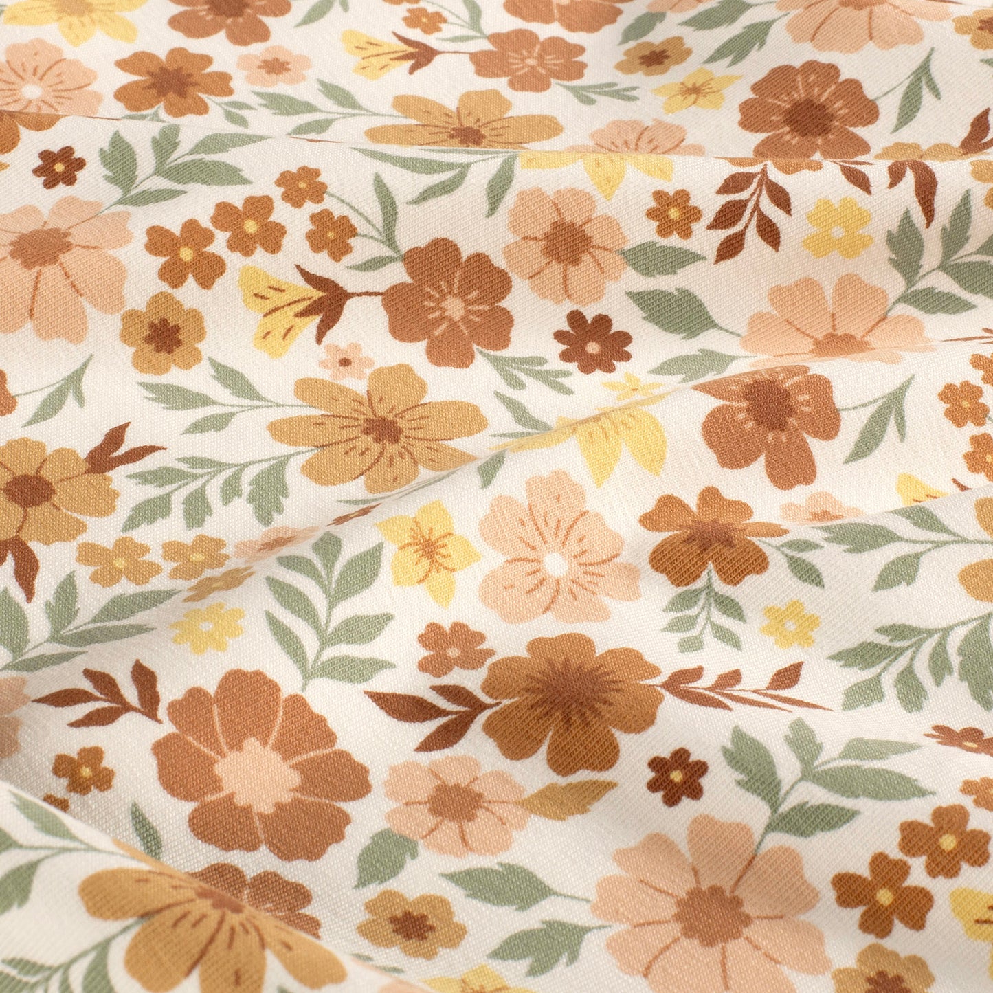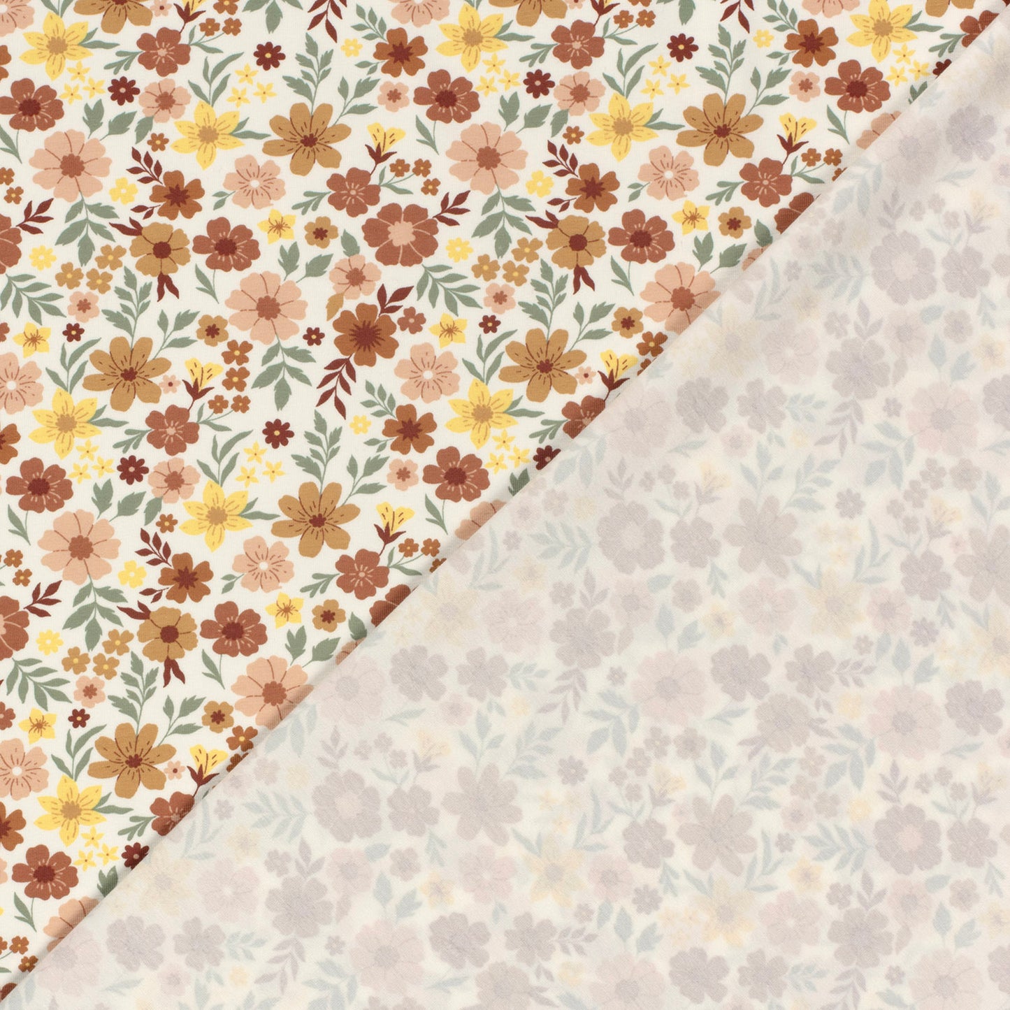 Jersey Stof Gebroken Wit Met Zomer Bloemen
