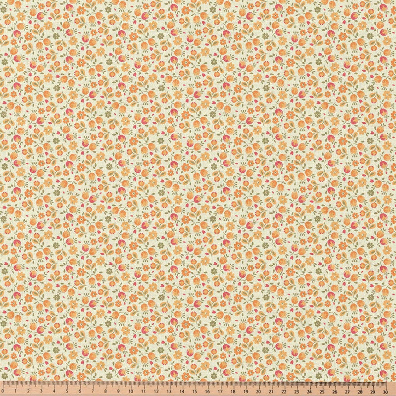 Katoen Poplin Stof Bloemetjes Casei Geel Oranje