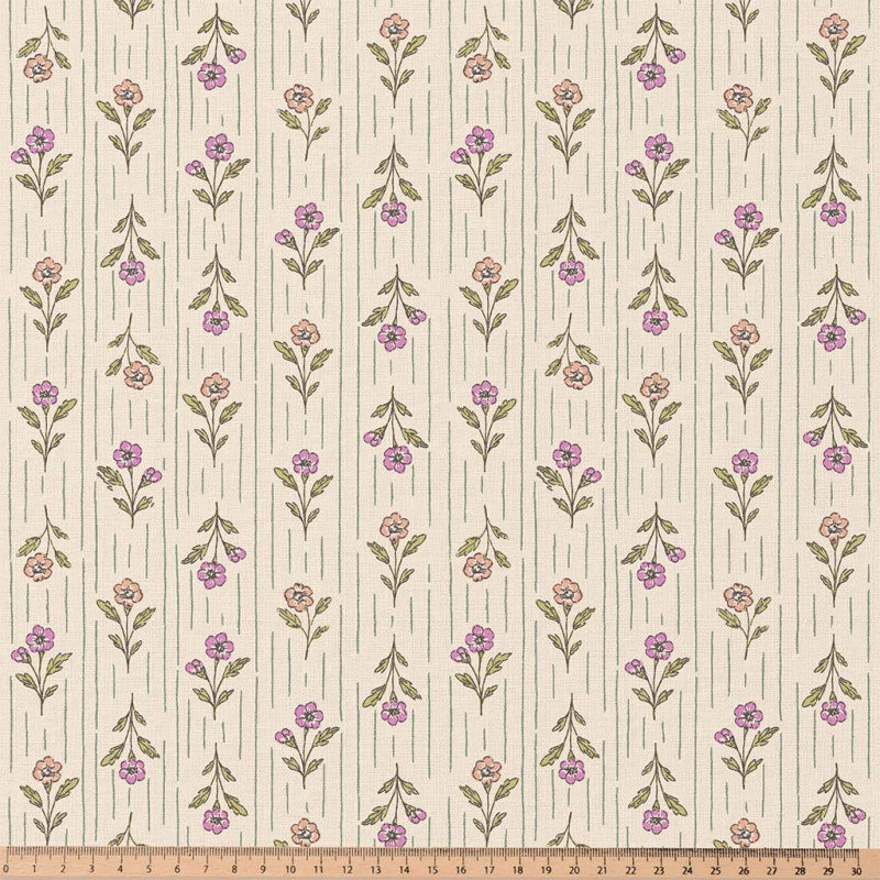 Katoen Poplin Stof Bloemetjes Aesa Ecru Roze