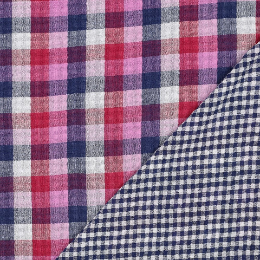 Hydrofiel dubbelzijdig ruitjes lila navy