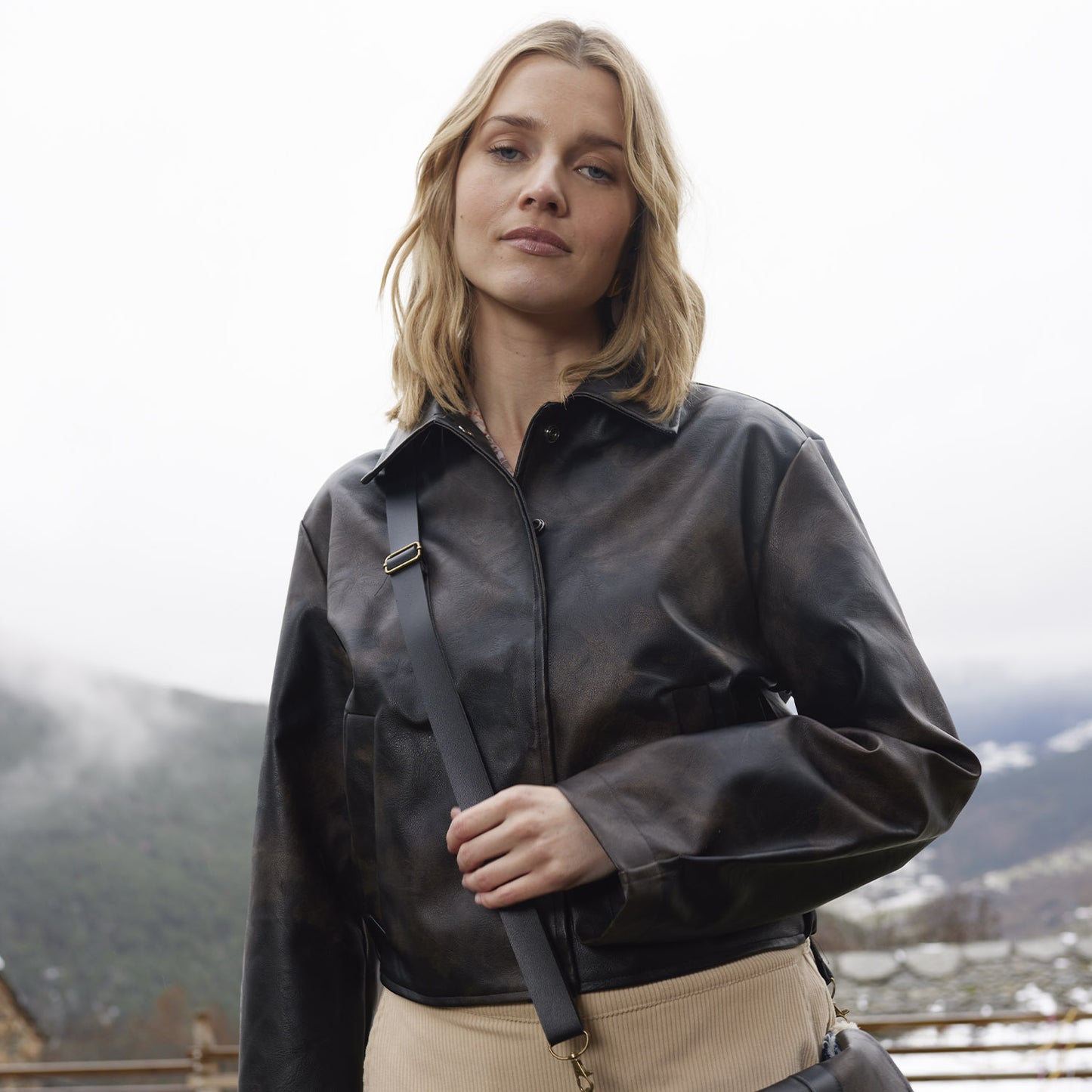 Het vegan kunstleer Chester Black Coffee is een verfijnde herinterpretatie van klassiek leer en biedt een elegante en duurzame afwerking zonder het gebruik van dierlijke materialen. Geïnspireerd door de karakteristieke Chesterfield-bekleding, is deze stof gemaakt van 50% polyester en 50% polyurethaan, met een zachte textuur en een stevige structuur van 400 g/m². Ideaal voor bikerjacks, klassiek gesneden mantels en accessoires zoals tassen of rugzakken. De donkere bruintint voegt een tijdloze en veelzijdige uitstraling toe aan elke creatie, perfect voor wie op zoek is naar een hoogwaardige en stijlvolle vervanging voor traditioneel leer.