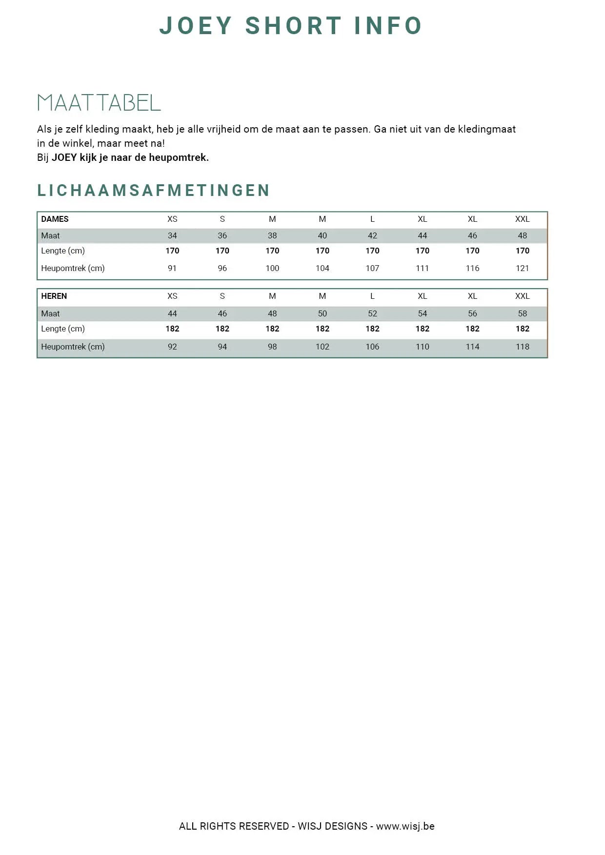 Wisj - Joey Short Dames En Heren (papieren patroon)