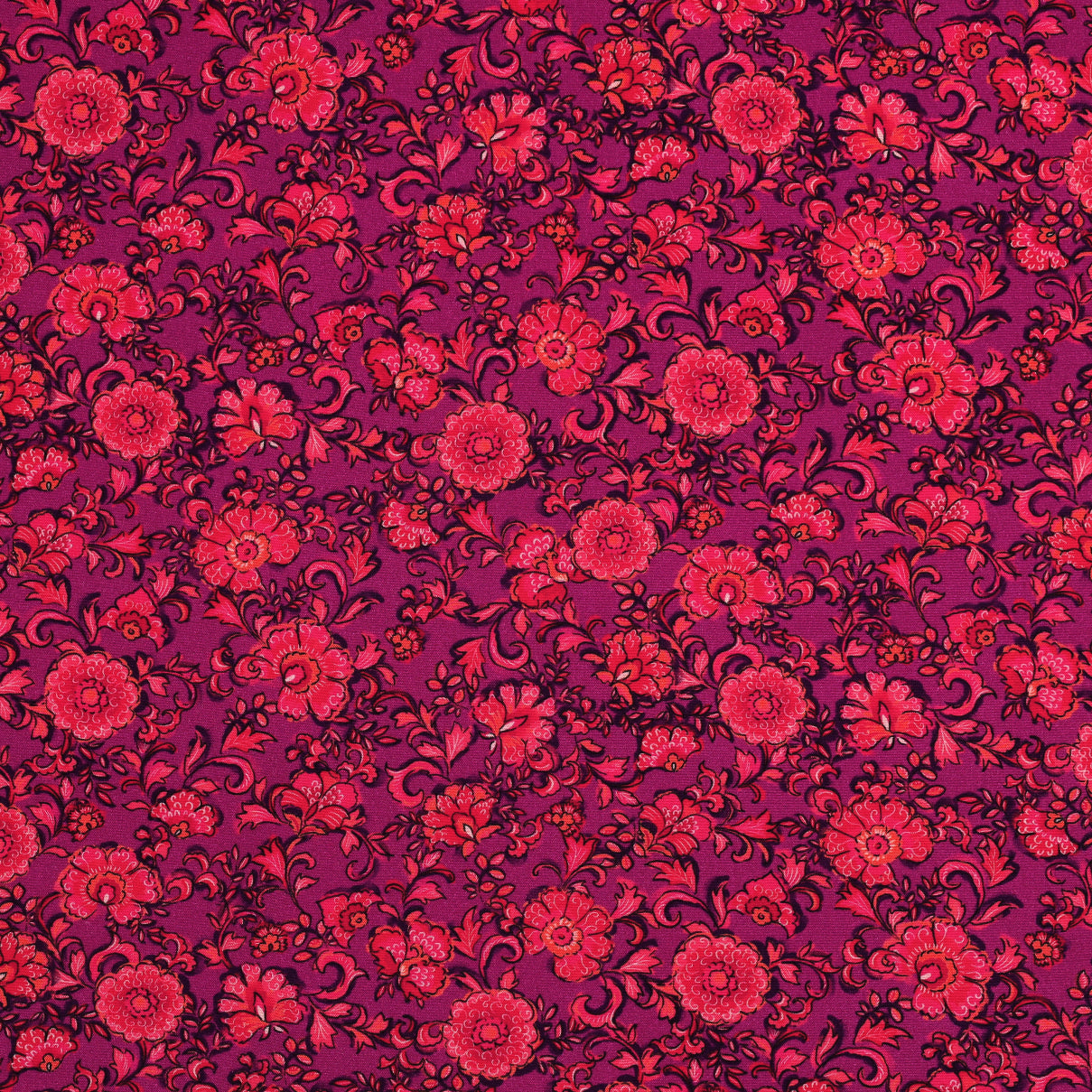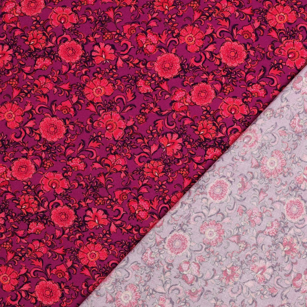 Viscose Poplin Stof Stretch Digitaal Bloemen fuchsia