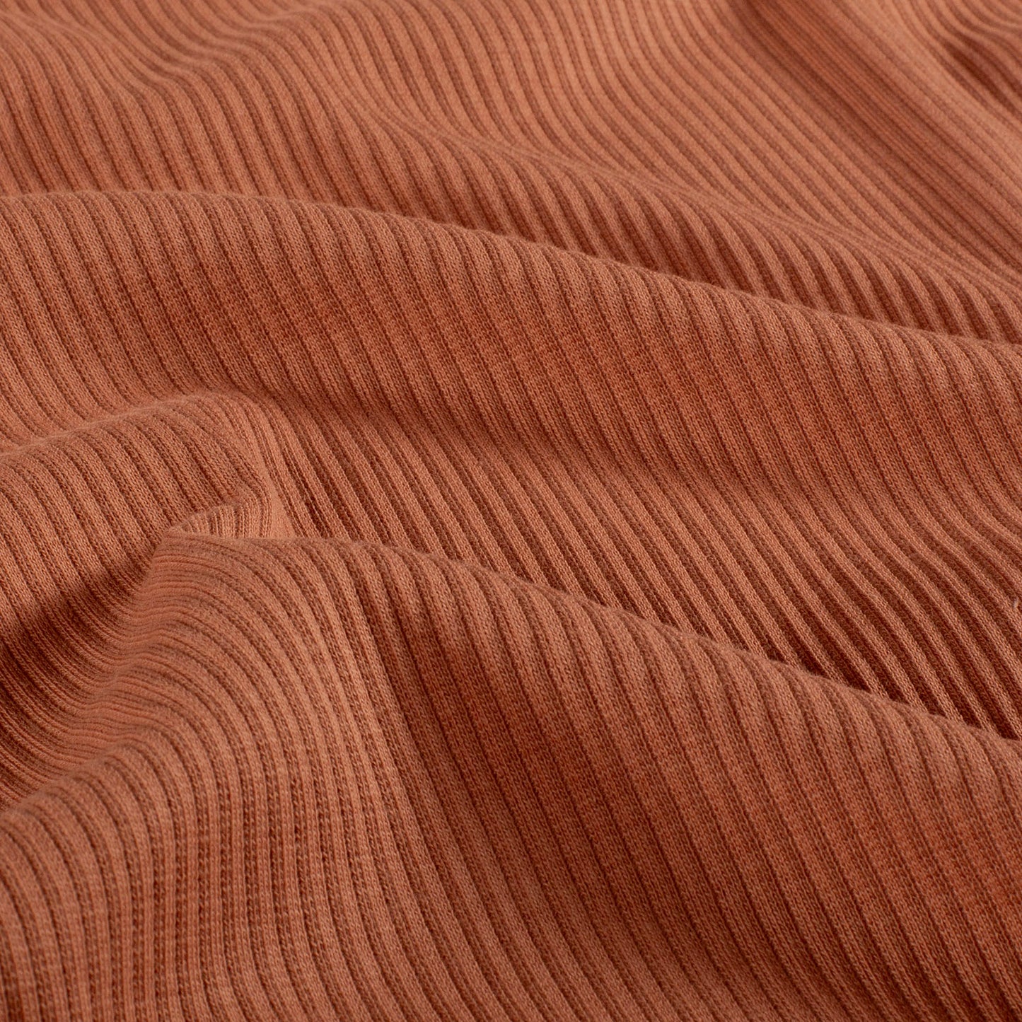 Ribjersey is een gebreide stof die wordt gekenmerkt door een opvallend patroon van verticale ribbels. Dit wordt bereikt door afwisselend rechte en averechte steken te gebruiken tijdens het breien. Ribjersey is elastisch, waardoor de stof goed meerekt en comfortabel aanvoelt. Het wordt vaak gebruikt voor kledingstukken zoals T-shirts, tops, truien, leggings en accessoires vanwege de soepele en ademende eigenschappen. Ribjersey heeft een lichte structuur en is veelzijdig, waardoor het geschikt is voor zowel casual als sportieve mode.